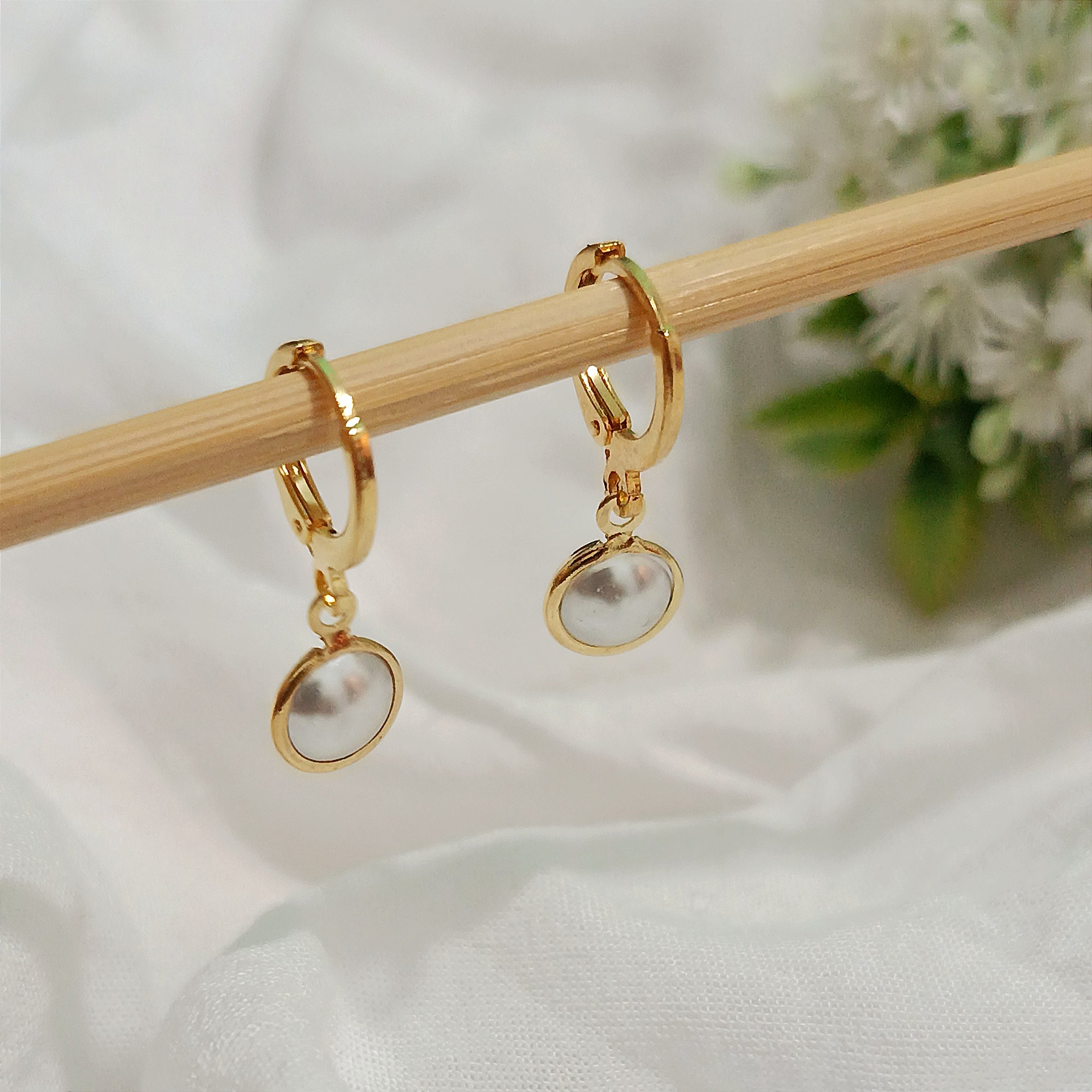 Argolinha Click Pingente Pérola Achatada